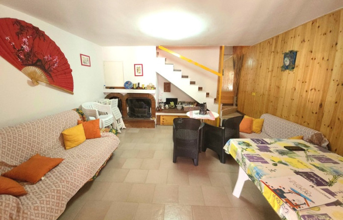 A tre km dal paese, in piccolo residence, abitato tutto l’anno, proponiamo in vendita graziosa villetta a schiera di 65 mq bilivello. L’immobile già arredato e quindi fruibile da subito, è così suddiviso: a piano terra, ingresso in veranda coperta, ampia sala pranzo con camino, cucinino e bagno di servizio; al I piano camera da letto e bagno. Giardino esclusivo di 250 mq. Accesso indipendente pedonale, con ampia possibilità di parcheggio in zona condominiale privata, a 20 metri di distanza. Visuale panoramica, con piacevole sensazione di essere immersi nella foresta. Ottima esposizione al sole.